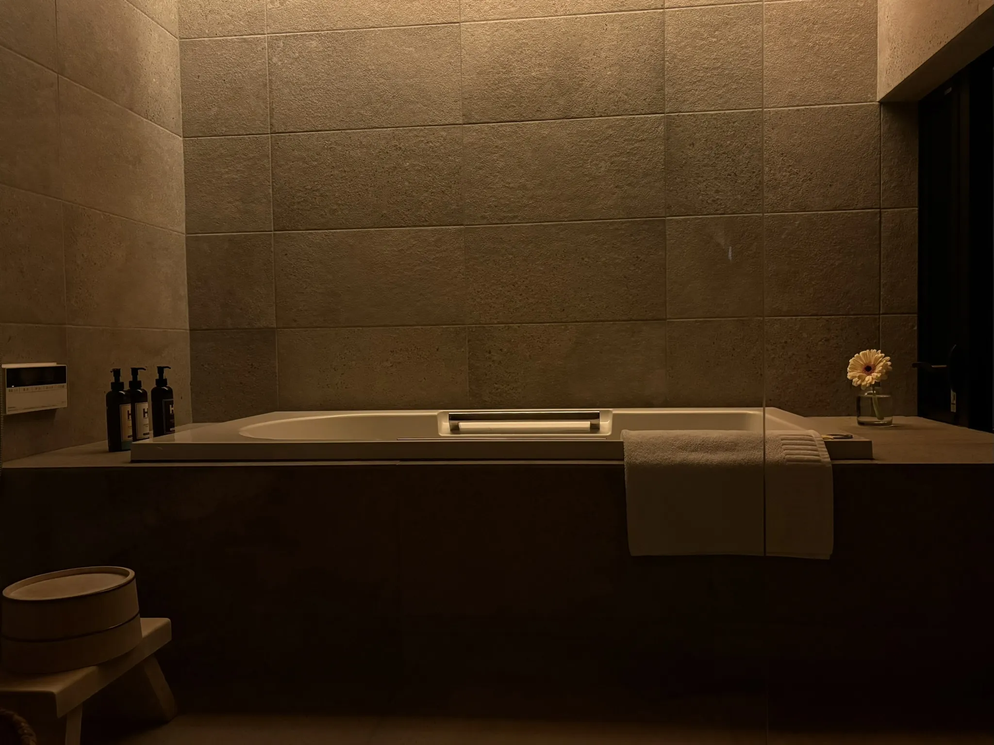 お風呂 天然の石板が暖かく優しい表情のみかさ自慢のお風呂は、お湯に浸かりながら庭の眺めを楽しんでいただけます。 備え付けのシャンプー、ボディソープなども品質にこだわりセレクトしています。