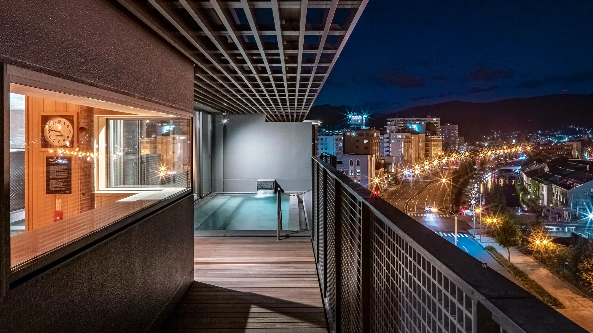 お風呂 ■6階 展望露天風呂&サウナ  ̄ ̄ ̄ ̄ ̄ ̄ ̄ ̄ ̄ ̄ ̄ ̄ ̄ ̄ ̄ ̄ ̄ 石狩湾を一望する最上階の展望露天風呂。 海と浴槽が一体化する、至極の開放感。 大きな窓から景色を望めるオートロウリュサウナの後は、水深1.2mの水風呂が火照った身体をじんわりと冷やします。広々とした外気浴スペースで、心安らぐ"ととのい"をお愉しみください。