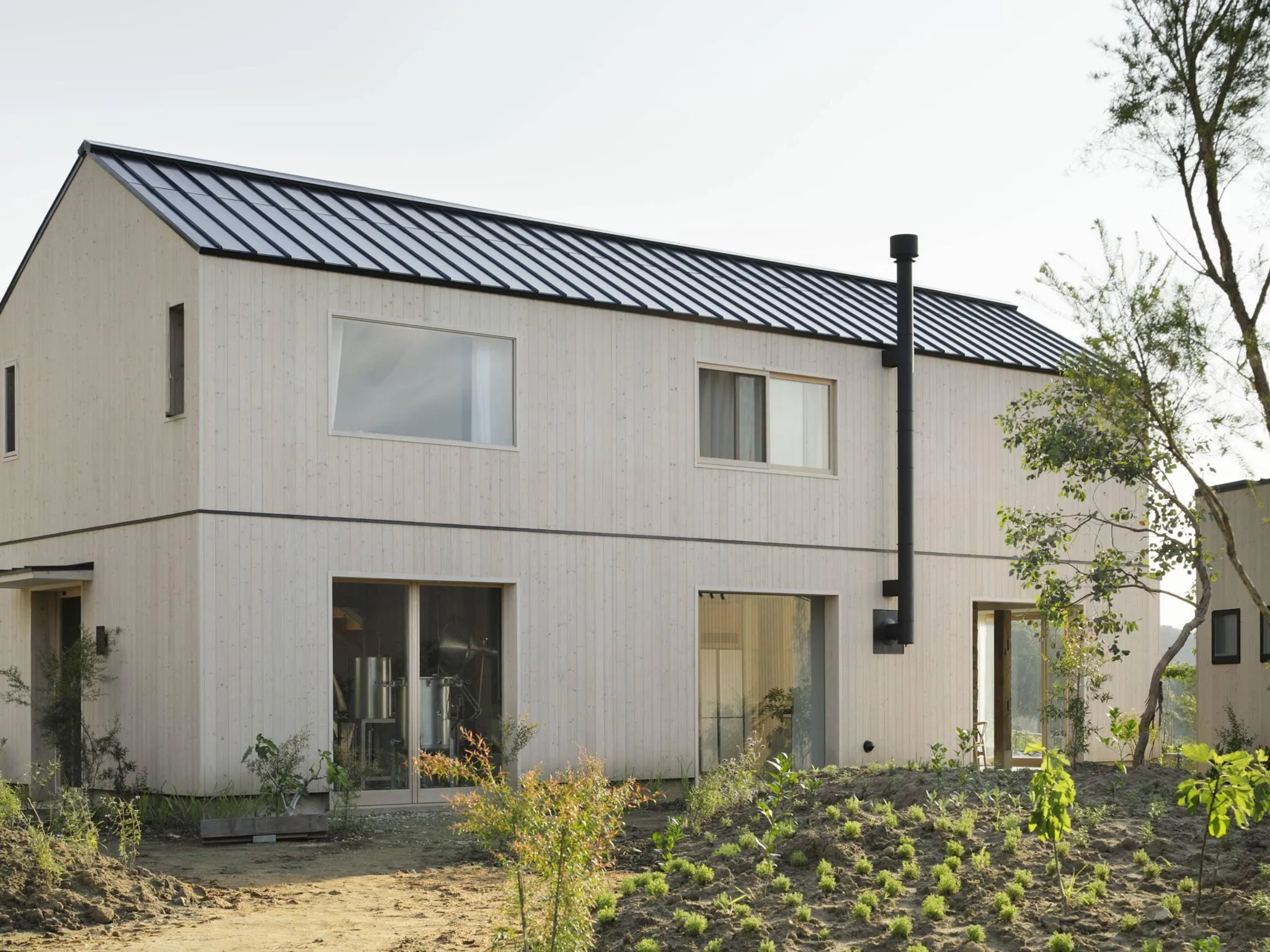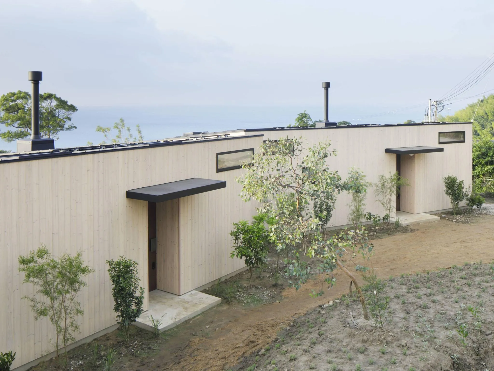 ~TERROIRについて・私たちの想い~ 取り壊されて、廃棄される建物に新たな場所で新たな価値を創造するというリロケーション建築。 私たち日本人が古から考えてきた木造建築とミニマルなインテリアのプレゼンテーションです。 大きな梁、柱、そこに記されたサスティナブルなメッセージを感じていただければと思います。 ~各棟のご紹介~ <KURA> 二階建ての築250年ほどの蔵を移築した建物です。 1階に蒸留所と薪窯付きのキッチン、2階に寝室とお風呂を配置した開放的な空間です。 また、URA宿泊のお客様は、サウナの使用が可能です(有料) ご希望の場合はご連絡ください。 ベッド:ダブルベッド2台/ソファベッド1台 <F-HUT> 南側に180度広がる景色の中に佇む、象徴的な楠。 この地には、室町・弥生、さらに縄文時代の地層が残り、開発の際には土器も発掘されました。 古くから人々を惹きつけてきた、この土地ならではの時の重なりを感じていただけます。 海を眺めながら、夏は縁側で涼み、冬は焚火を囲む。 大切な方とともに、四季の移ろいをゆったりとお楽しみください。 ベッド:ダブルベッド2台/ソファベッド1台 <S-HUT(犬宿泊可棟)> 目の前に広がる海を眺めながら、気持ちよく料理を楽しめる小屋です。 大きすぎる豪邸ではなく、こだわりの詰まった空間だからこそ味わえる心地よさ。 そして大切な愛犬と同じ時を過ごせるのもこの小屋の良いところ。 美味しい料理とともに、大切な方や愛犬と過ごす、穏やかな時間をお楽しみください。 ベッド:ダブルベッド2台/ソファベッド1台 ※わんちゃんのお受入れに関してペット情報ページを必ずご確認ください。