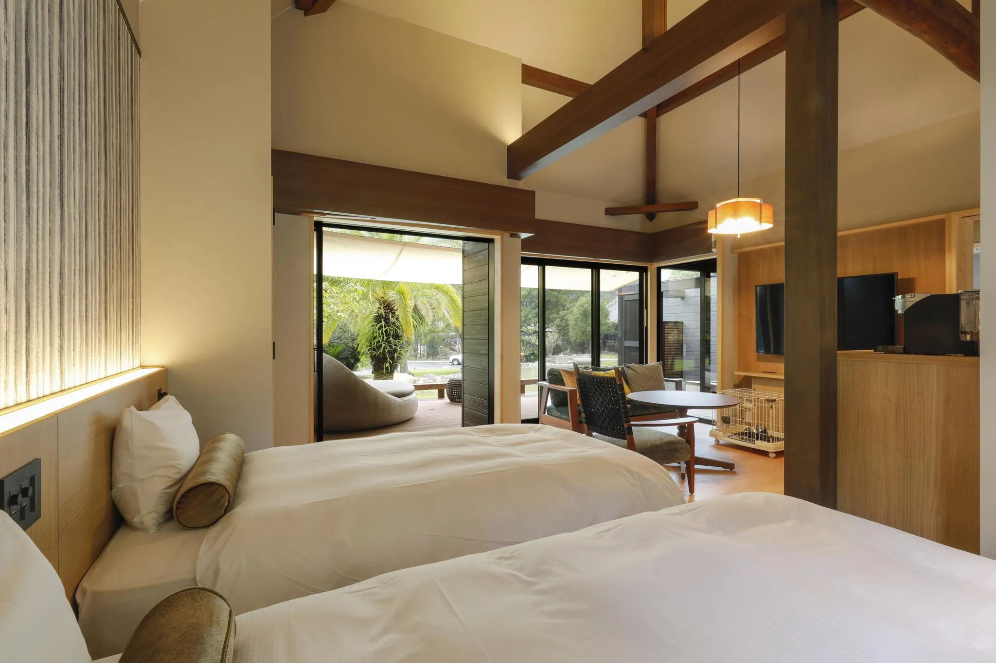 2023年6月、全客室ペットと泊まれるヴィラとしてグランドオープン。 野鳥のさえずりで目覚め、時折野生動物にも出会える森の中。 創作和食、露天風呂、ドッグランなど、お客さまもわんちゃんも楽しめます。 何もしない贅沢な旅も、伊勢神宮や熊野古道へのご旅行も、ぜひわんちゃんと一緒にお越しくださいませ。