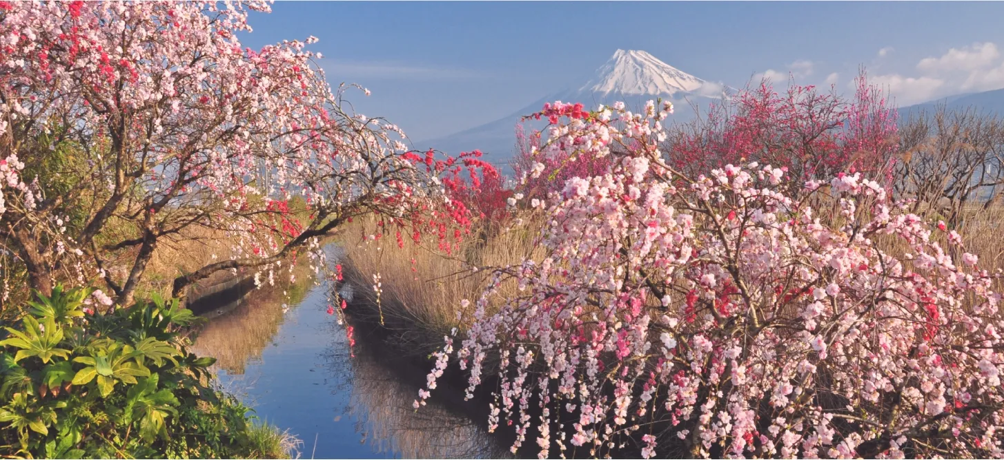 - 桜・菜の花などと富士山のコラボレーションが楽しめる