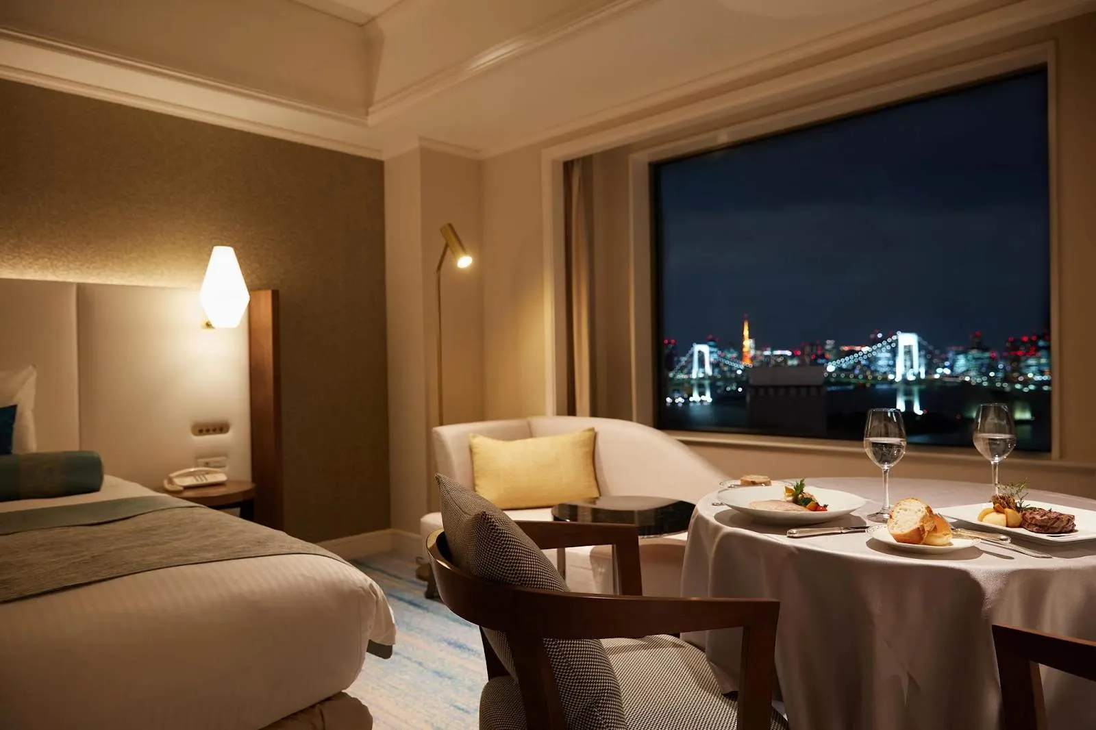 東京・お台場に位置する「グランドニッコー東京 台場」は、レインボーブリッジや東京湾を望む抜群の眺望と、上質なサービスが魅力のシティリゾートです。エグゼクティブフロアでは、東京タワーを望む客室や専用ラウンジが用意されており、スイーツや軽食、アルコールが時間帯ごとに楽しめます。
