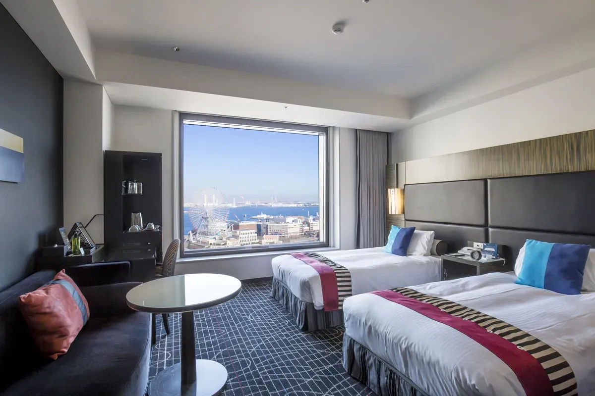 横浜みなとみらいの海辺に建つ「ニューオータニイン横浜プレミアム」は、観光にもビジネスにも便利な立地が魅力のホテルです。海側の客室からは横浜港のパノラマを望むことができ、夜にはきらめくベイエリアの夜景が広がります。