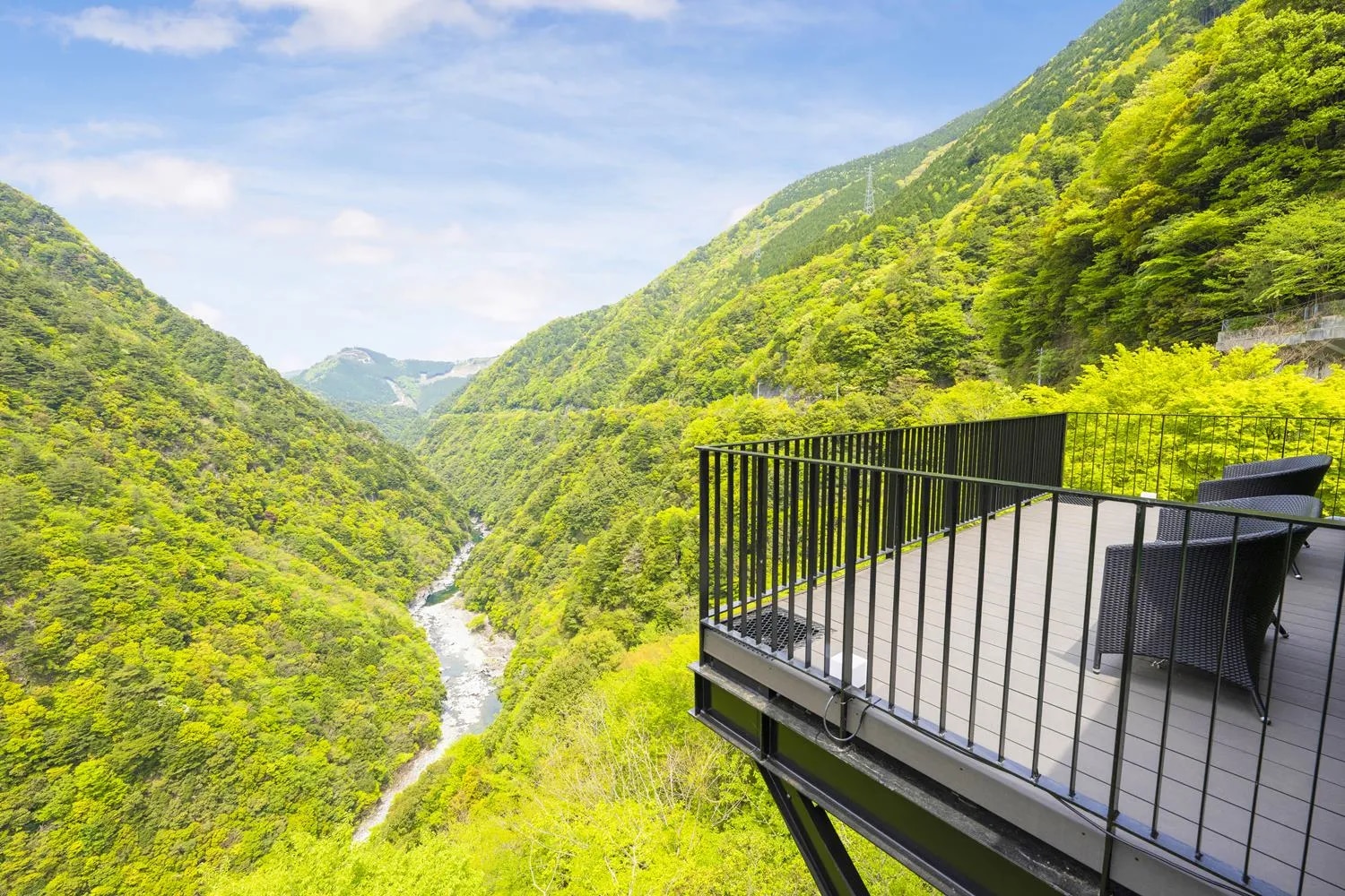 【トピックス】 2023年 春 、ケーブルカーが新しくなりました。 花を纏った車両はゆっくりと祖谷渓谷を昇り降りをし、露天風呂へとご案内します。 5分間の小旅行をお楽しみください。      徳島県西部、山々を切り込むように広がる祖谷渓谷。 自然の織りなす絶景に囲まれながら、「ホテル祖谷温泉」は佇みます。 谷底に位置する露天風呂までは、ケーブルカーでご案内。 渓谷の四季を眺めながら下ること5分、源泉かけ流しの露天風呂が見えてきます。 2つのお風呂は1日ごとに男女入れ替え。異なる景色を楽しめるのも魅力のひとつ。 渓流のせせらぎをBGMにくつろぎの時間を満喫しましょう。 お部屋は、和を基調とした上品なデザインが特徴。 「ふわり」「ふたりじめ」「一般客室」の3パターンが展開されています。 露天風呂付きやテラス付き、足湯付きなどお気に入りの部屋タイプをお選びください。 夕食は地元の食材をたっぷりと使ったこだわり料理をどうぞ。 大自然に育てられた山菜や徳島名産の阿波牛、祖谷ならではの川魚など、 季節の旨味を凝縮した品々がずらりと並びます。 朝食は、和食と洋食をご用意。 体に優しい素朴な味が、 さわやかな旅の朝をより華やかなものに演出してくれます。 “和敬静寂”ーー。 主人と賓客が互いに心を開いて尊敬しあい、常に清らかで動じない精神を大切に。 茶道の心得であるこの言葉は、宿主の熱い想いを表しています。 秘境の恵みとおもてなしに囲まれる滞在体験は、 素敵な旅の思い出として刻まれることでしょう。