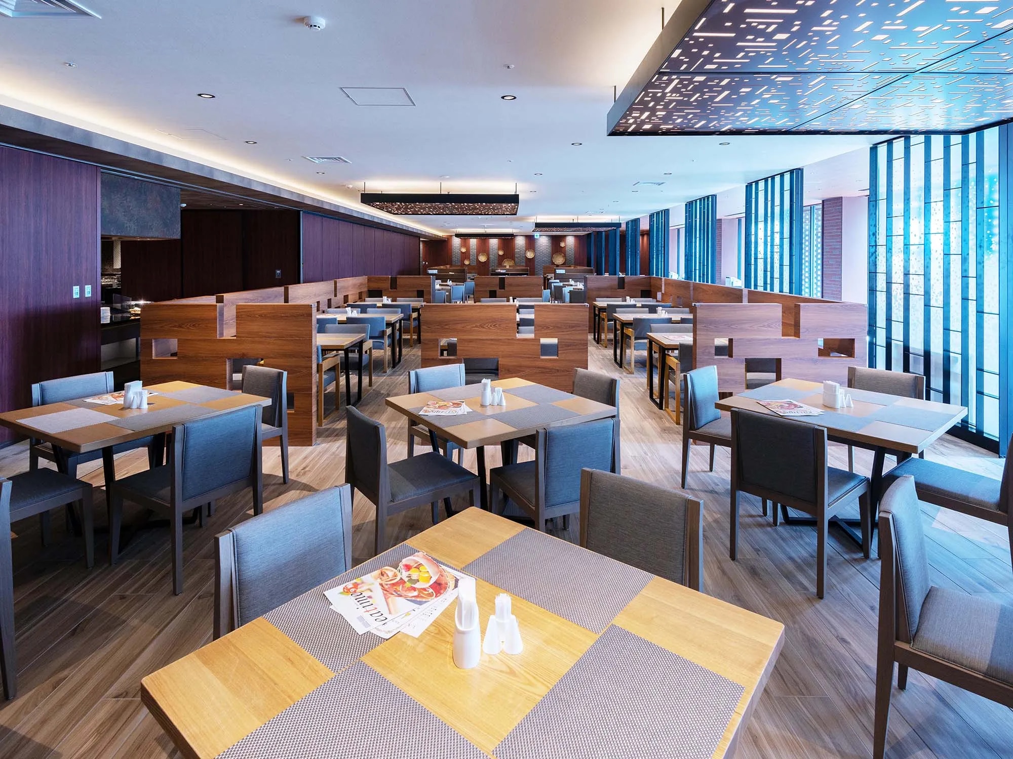 レストラン ●東館1階 レストラン「アゼリア」  ・6:30~10:00(L.O.9:30)※お日にちによって時間が変更となる場合があります  ・11:30~14:30(L.O.14:00)  ・17:30~21:00(L.O.20:00)※コース料理L.O.19:30 ●東館2階 日本料理 うなぎ「松前」  ・7:00~10:00(L.O.9:30)※お日にちによって時間が変更となる場合があります  ・ランチ、ディナーは当面の間休業 ●西館8階 鉄板焼「ビュメール」  17:00~21:00(L.O.20:00) ●東館1階 ホテルショップ「モンモランシー」  8:00~19:00 ●東館1階 ラウンジ「ル・アーヴル」  10:00~17:00(L.O.16:30) ●西館8階 スカイラウンジ「ル・モン・ガギュー」  20:00~23:00(L.O.22:45) ※今後の状況により営業時間等が変更となる場合がございます。  その場合には当ホテルホームページ等にて随時ご案内いたします。