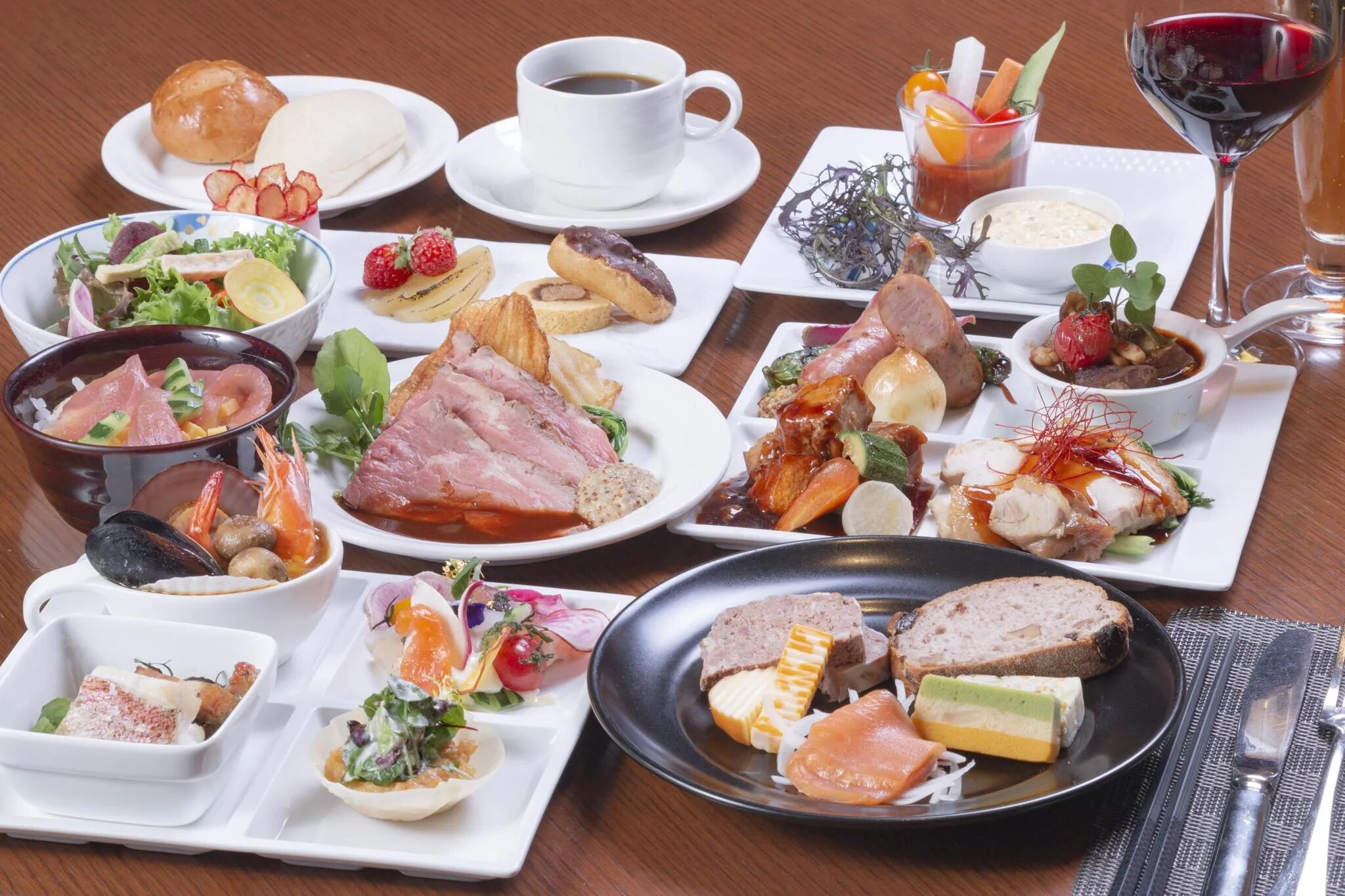 レストラン 【ダイニングGRANDISH】 信州の食材をお楽しみいただける様にシェフがテラスアレンジをしたメニューをご用意しております。 ブッフェは、前菜からメイン、デザートをお客様のお好みで作ってお楽しみいただけます。 限定予約制でフルコースメニューもございます。 ランチ営業については、期間限定で行いますのでホテルまでお問い合わせくださいませ。