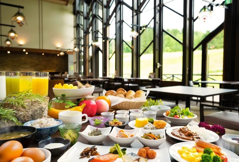 レストラン ■夕食のご案内 地元食材をふんだんに使用した個別に盛ったお料理を取っていただくビュッフェ形式をお楽しみいただけます。 ≪石窯ダイニング白樺18:00~20:00≫ □朝食のご案内 一日のスタートはおいしい朝食から! ≪石窯ダイニング白樺 7:00~9:00≫ ※お食事は夕朝食共にセットメニューになる可能性がございます。 【ご注意】レストランのご利用について 浴衣、作務衣、寝間着姿でのご利用はできませんことを予めご了承ください。
