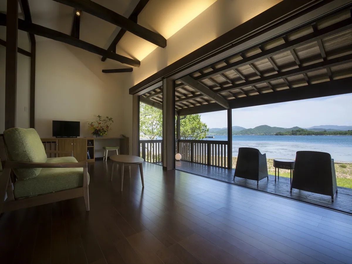 「神の箱庭」と称される丹後半島の久美浜湾。 季節ごとに様々な表情を見せる波静かなこの海沿いに1棟だけ建つ隠れ宿。 日頃の喧騒から離れ「心を凪にしていただく」をコンセプトに、 鏡のような水面の久美浜湾を眺めながら、何もしない贅沢をお楽しみください。 400㎡の敷地に建つ広々としたオーシャンビューの客室は、 誰にも邪魔されないプライベートな空間。 波静かな久美浜湾を眺め、緑豊かな庭園では鳥のさえずりを聞き、 テラスでは優しい海風を感じながら心穏やかにお過ごしください。 お部屋付きの専用の温泉では、 久美浜湾を眺めながら誰にも邪魔されずゆったりとお湯をお楽しみいただけます。 夜になれば満天の星空が頭上に広がり、 日常から遠く離れた、幻想的な世界を見せてくれます。 旅行に来たら、その土地ならではの食に出会える楽しみがあります。 訪れる人の願望に答える料理がここにはあります。 冬は丹後の活松葉ガニをはじめ、通常は高級料亭に直送され、 市場に出回らない高級魚など、贅沢な品々を心ゆくまでお愉しみいただけます。 景色、食、温泉が織りなす、ひっそりとした自分たちだけの贅沢な時間。 日常から離れ「心を凪に」何もしない贅沢をお楽しみください。
