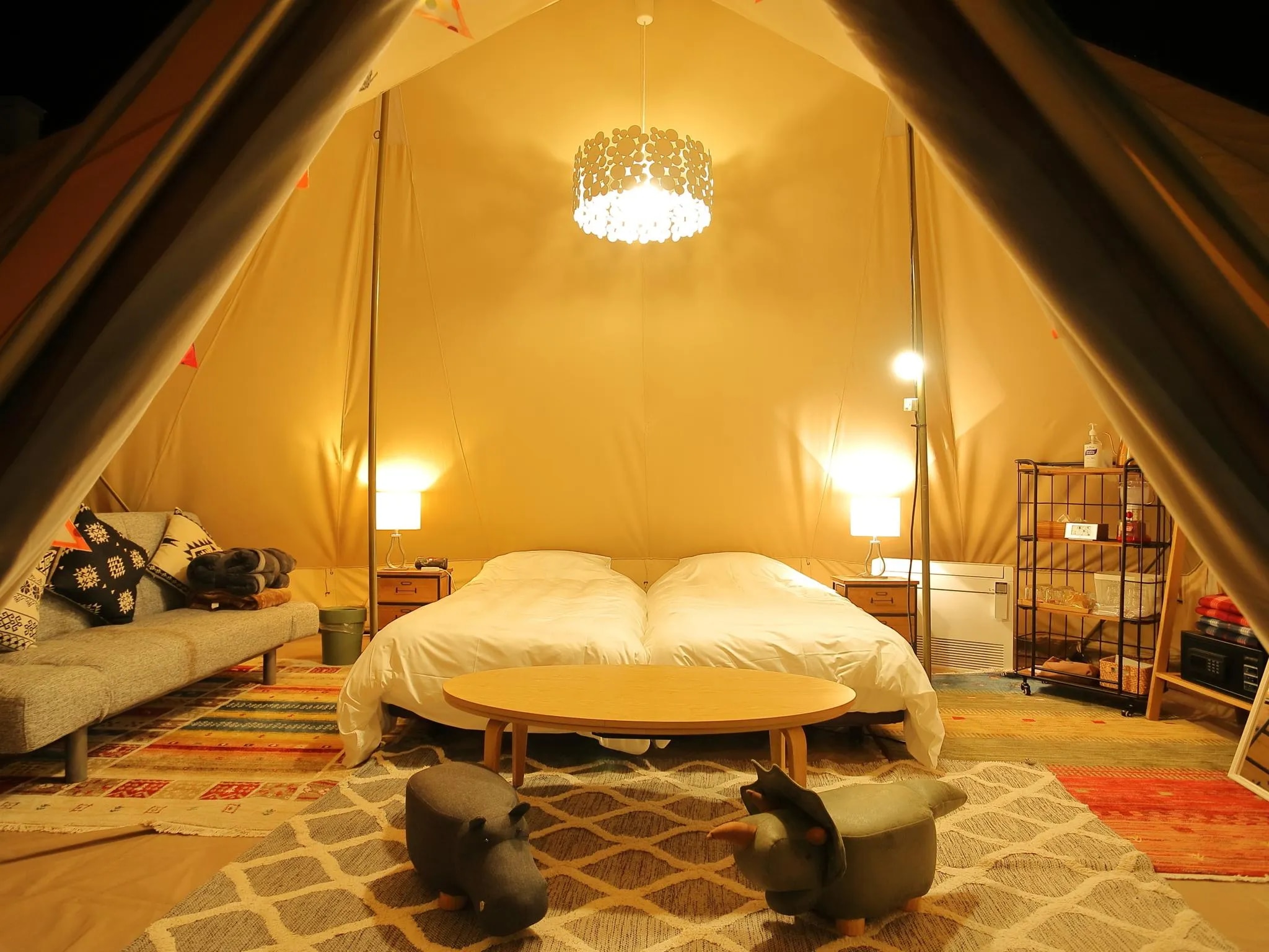 ご案内 ちょっとした非日常を体験できるグランピング施設を提供します。 気楽に、手ぶらで、自由にお過ごしください。 ペットも◎ですので、愛犬ともご一緒にお越しください。 お車は、トレーラー又はテントのすぐ隣に駐車可能です。