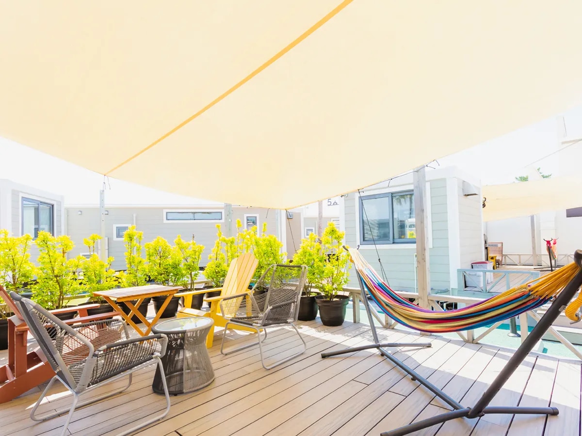 その他 パブリックエリアでは、ファイヤーサークルやマシュマロ体験、囲炉裏を使った焼酎のふるまいや屋外シアターなど、自由にくつろげる空間となっておりますので、ご自由にお楽しみください。 ファイヤーサークルは、少人数からお楽しみ頂けます。 ガス式ですので、キャンプファイヤー特有のにおいや煙がありません。 併設して囲炉裏もありますので、より和の雰囲気を楽しみたい方は、こちらも自由にお使いください。 また、囲炉裏では地元の焼酎のふるまい酒を行っていますので、そちらもお楽しみください。 プールサイドでは屋外シアターを楽しめます。 屋外シアターは雰囲気重視ですが、普段と違う環境で、少しばかり非日常なコミュニケーションをお楽しみください。