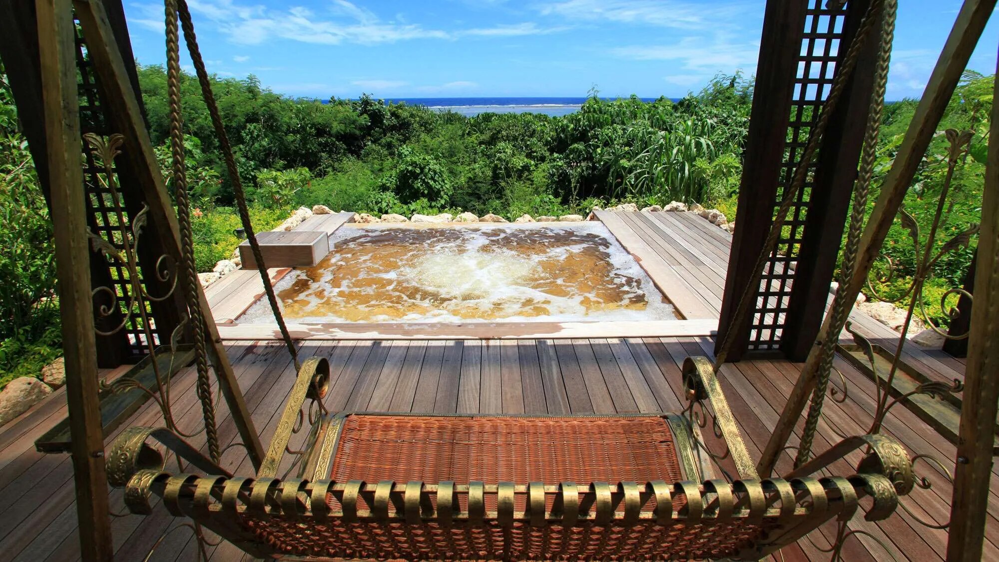 お風呂 ■シギラ黄金温泉 緑と花々に囲まれた宮古島の絶景温泉。 琥珀色の天然温泉が、極上の安らぎをもたらします。 ※温泉施設はリゾート内の施設となります。 -ジャングルプール 地下1250mから湧き上がる源泉温度は50度。 天然源泉を使い1年中暖かく入れる、水着着用のジャングルプール。 ※水着はお客様にてご持参ください(レンタル・販売あり) -露天風呂 湯温41度前後の露天風呂。 沖縄の天然石を配し、緑と花々に囲まれた開放的な空間です。 -展望風呂 湯温42度前後の露天風呂。 昼は爽快に、夜は波の音に包まれながら温泉を楽しんでいただけます。
