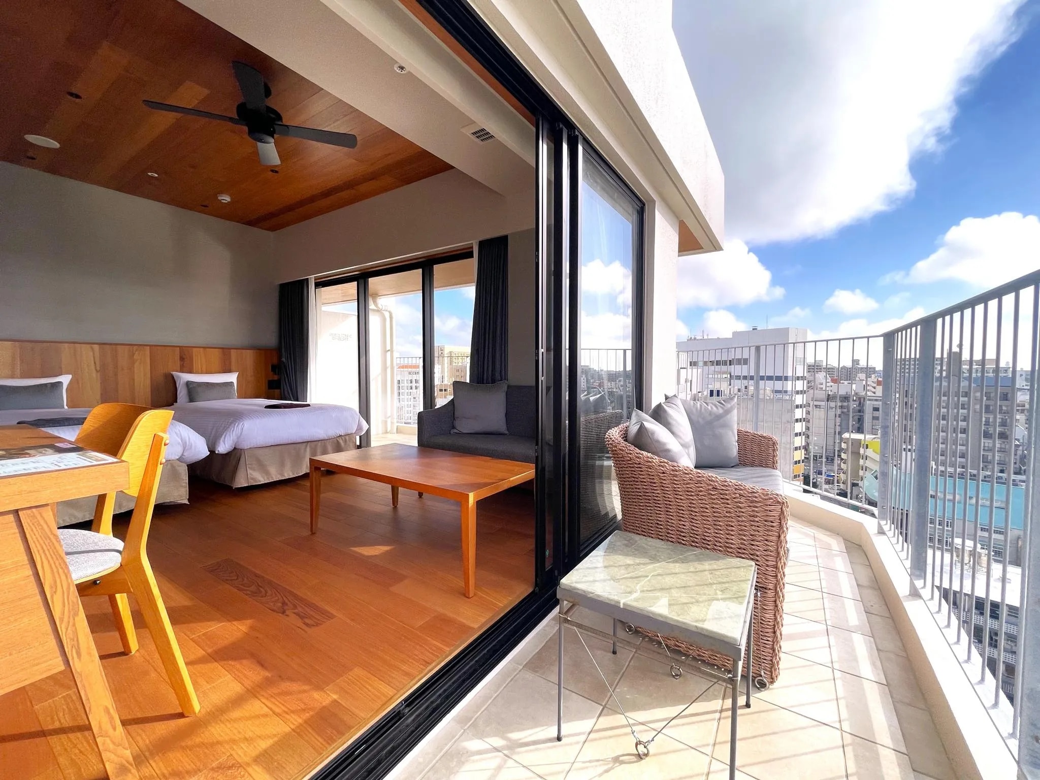 全室バルコニー付、那覇市内のアーバンリゾートホテル。 那覇で随一のRoof Top spaceからのサンセットは記憶に残る体験。 市内を見下ろすロケーションでリゾートの様に ゆったりとした時間をお過ごし頂けます。