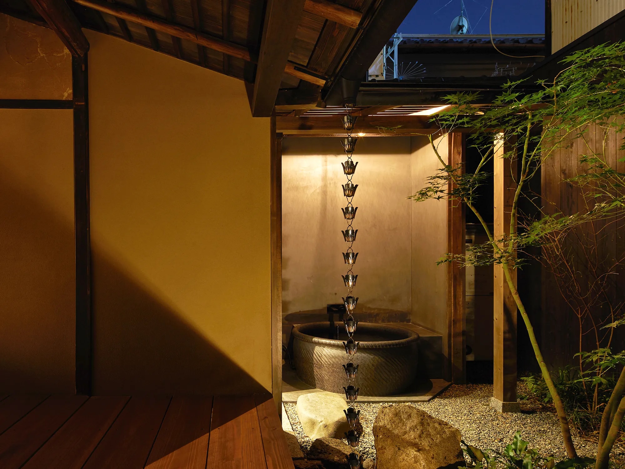 その他 当施設には京町家の暮らしを十分にご堪能いただく為、 自身本来のあるべき面を見つめ直す事を目的にテレビは設置しておりません。 この主旨にご理解をいただきご予約をお願いしております。 ■客室設備 WiFi/シャワー/露天風呂/ヘアドライヤー 冷暖房/床暖房/冷蔵庫/洗浄機付トイレ 洗濯機/簡易キッチン/電子レンジ/電気ケトル Bluetoothスピーカー/スチームアイロン