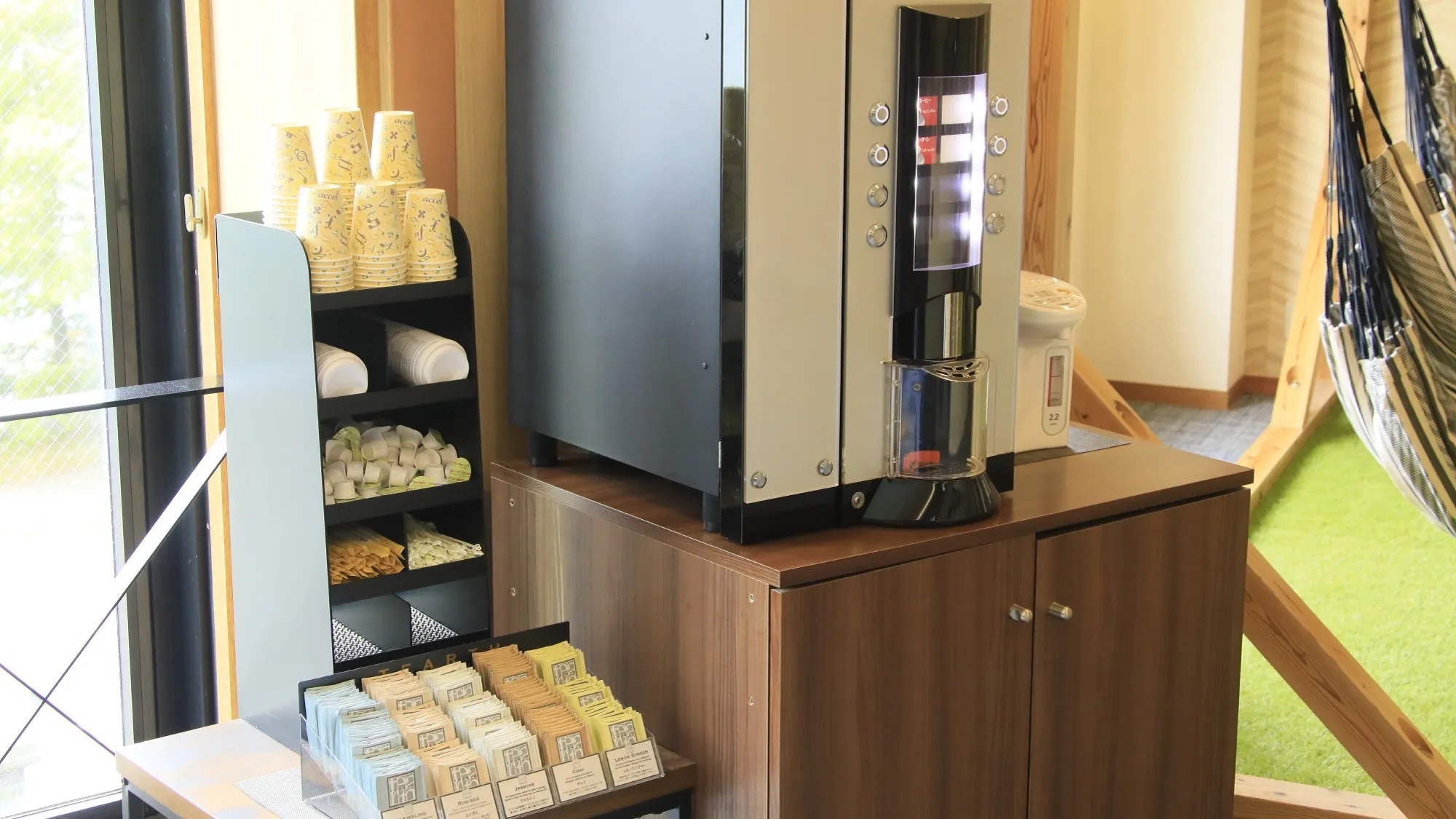 その他 ■フリードリンクコーナー <ご利用時間 15:00~22:00>  ラウンジ内とご夕食時に、お飲み物のご提供をしております。  アルコール含むお飲み物を、ご自由にお飲みいただけます。