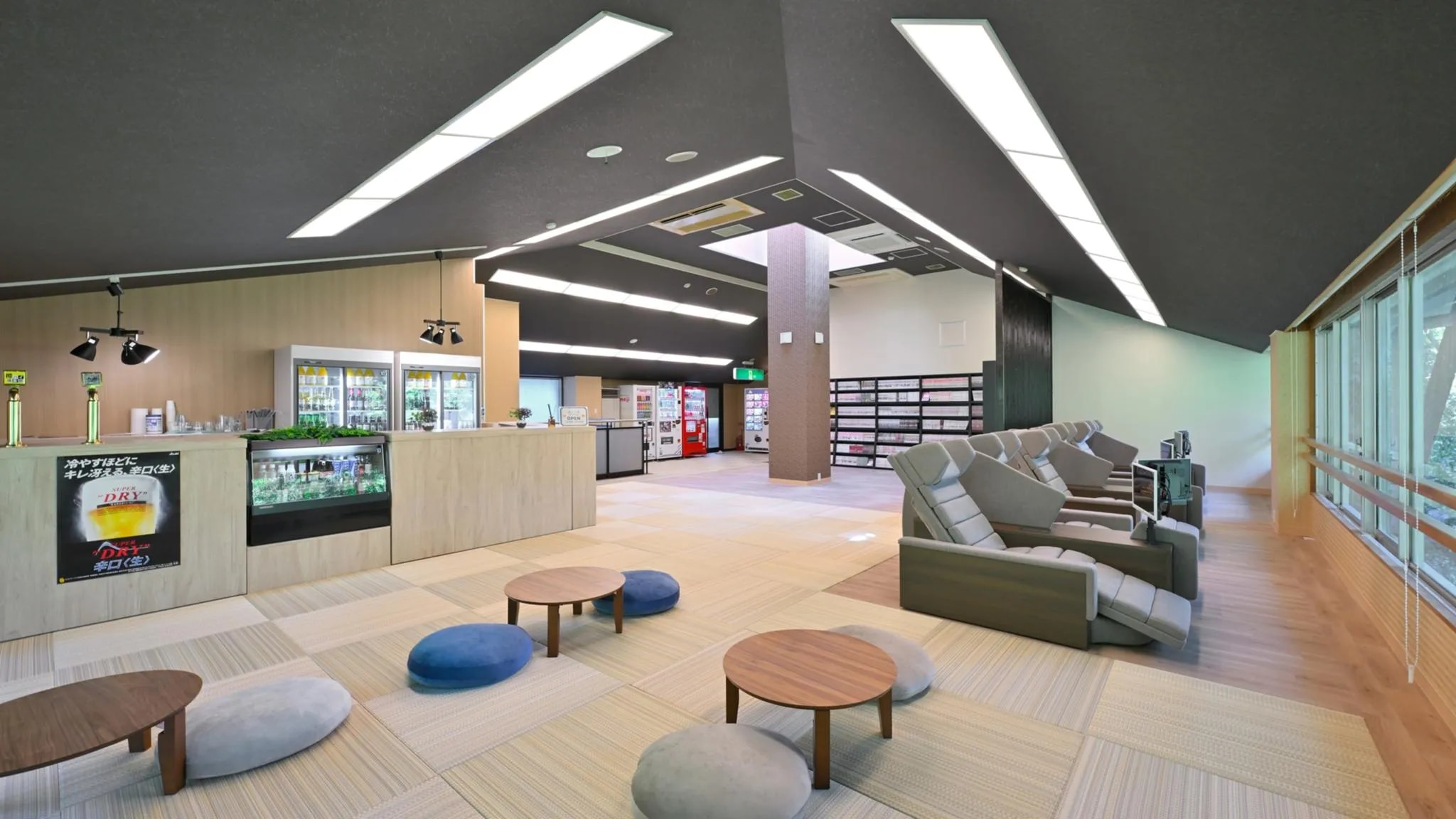 その他 ■湯上り処 温泉後はリクライナーでゆったり。 豊富な漫画コーナーや、地元ドリンクを味わえる専用バーカウンターもございます。 ■売店コーナー(8:00~22:00) フロント横に「ミニコンビニ」を設置。お菓子や軽食、飲み物などをご用意。 ■浴衣・下駄サービス 館内散策やお寛ぎに、浴衣と下駄を無料で貸し出しております。 ■ゲームコーナー(8:00~22:00) 昔懐かしいゲーム機やアミューズメントで、世代を問わずお楽しみいただけます。
